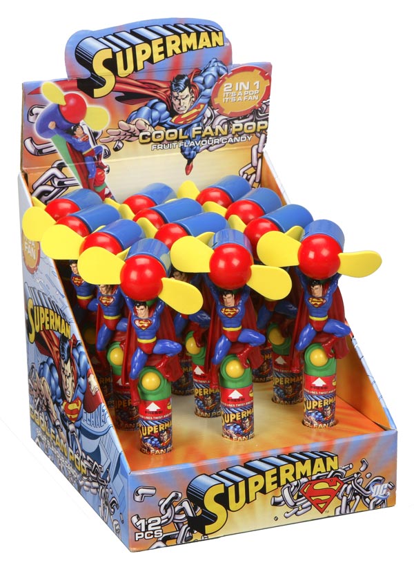 What's a cooler Cool Pop than Spider- Man?!? Spider-Man hangs on to our great Cool Pop Fans. Replaceable batteries insure a long life toy when the candy is gone! Packed 6/12's per case. #2403