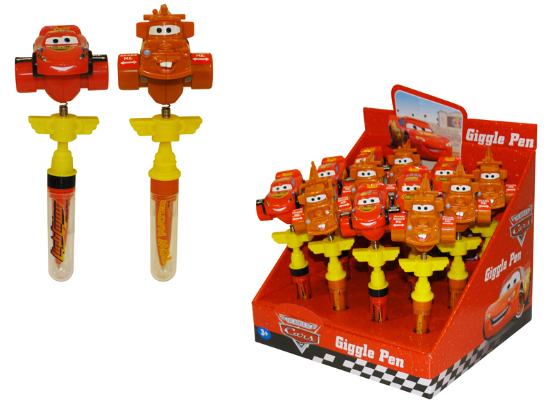 Item 61812: Shake it to the left, shake it to the right! These fun giggle pens come with Tow Mater or Lightning McQueen on top! Packed (6) 12 count displays per case.
