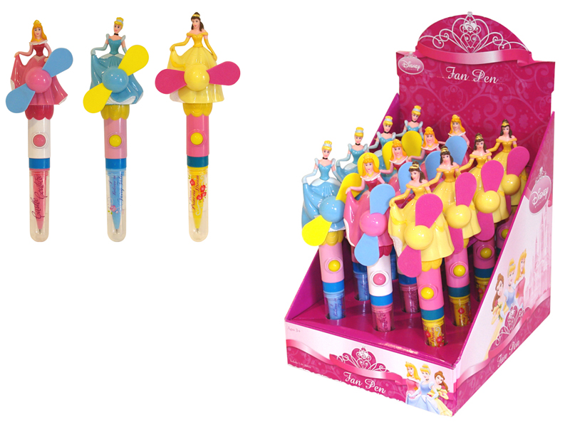 Item 6562: Your favorite Disney princesses- Cinderella, Aurora, and Belle- grace these powerful, child-safe fan pens with their beauty. Packed (6) 12 count displays per case.